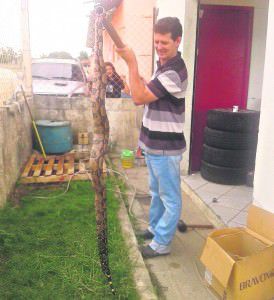MAIS COBRA? Na semana passada mostramos aqui na coluna uma cobra que foi encontrada em Chácara Parreiral. Dessa vez o flagrante aconteceu no bairro São Domingos, região da Serra-sede, pelo leitor Eudmar Pifer. O leitor encontrou duas cobras da espécie jiboia no último sábado (5) nas imediações de seu estabelecimento comercial.