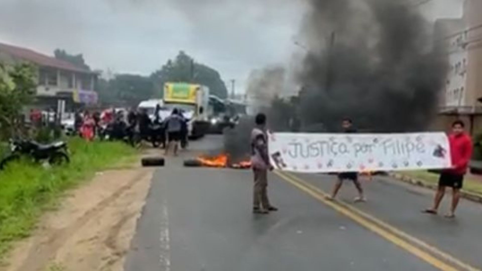 Familiares e amigos de Filipe Souza do Nascimento, de 24 anos, fecharam nesta sexta-feira (31) a rodovia Audifax Barcelos, em Macafé, na Serra, e incendiaram pneus em protesto contra a morte do jovem.