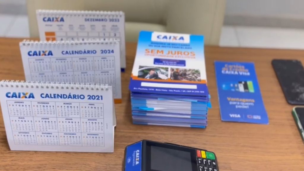 - Celulares, documentos e panfletos falsos vinculando o grupo à Caixa Econômica.