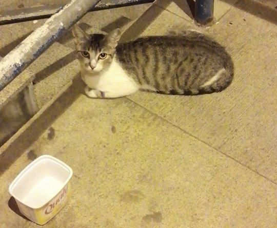 Segundo ele, a gatinha aparece todas as noites na escadaria ao lado da Igreja dos Reis Magos, bem atrás do Bar do Walter. Criou dois filhotes, os quais não estão mais com ela. Faz uma semana que Vilson está dando ração e água, mas ela precisa também de um lar e carinho constantes.