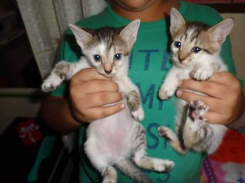 São duas fêmeas e tem um mês e meio de vida. Já comem ração e adoram tomar um leitinho.