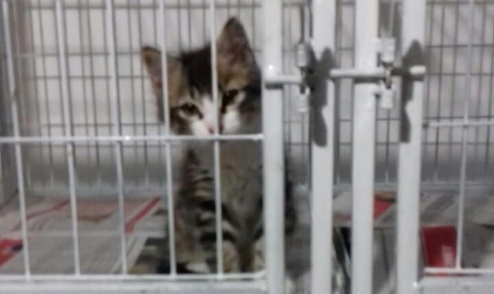 É um menininho saudável, tem 45 dias, e já está vacinado com a primeira dose da vacina quádrupla, que imuniza os gatos de doenças felinas.