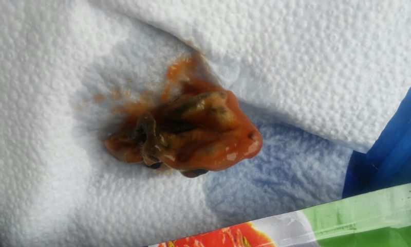 “Estava fazendo cachorro quente e quando coloquei o molho na panela percebi que caiu alguma coisa”, falou. “Chamei minha filha pra ver, ela lavou e vimos que era uma rã”, completa a moradora da Serra com espanto.