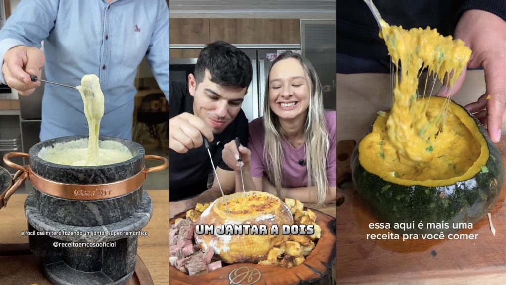 Um dos destaques é a receita do criador Kauã Oberhuber, que aposta num apetitoso fondue de queijo. No vídeo com mais de 2,2 mil visualizações, o segredo revelado está no meticuloso preparo do caldo. Com uma base rica em alecrim, alho e outras especiarias, o caldo fica com sabor mais intenso e o resultado é uma experiência mais aromática. Outro nome que investe nas versões salgadas é João Pedro. Desta vez, ele aposta no cheddar, mais cremoso e marcante, um dos queridinhos do paladar brasileiro, o que ajuda a explicar as quase 2 mil visualizações do conteúdo. Em outro vídeo, o criador também ensina uma variação com creme de alho, ideal para mergulhar pedaços de carne, como o contra-filé, trazendo ainda mais possibilidades para o preparo.