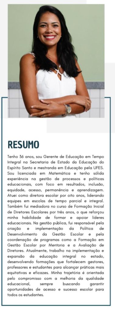 Dona de um vasto currículo na área da educação, que começou como professora de matemática, Mayara apostou na carreira docente e buscou ampliar seus conhecimentos. Possui licenciatura plena em Matemática e é mestranda em Educação pela Ufes.