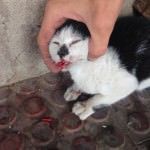 O gatinho foi resgatado pela Patricia Maciel e está com a protetora Norma Lopes Melo, esta já possui em sua casa 38 gatos e precisa de muita ajuda.