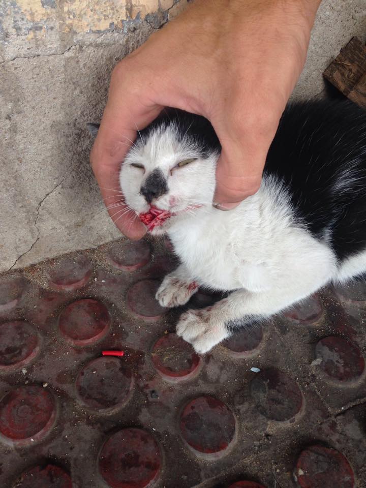 O gatinho já foi atendido pela veterinária. Está com uma fratura na boquinha chamada fratura de sínfise. A veterinária disse que ia colocar um fio cirúrgico entre os dentes que ia “colar” a fratura dele. Por hora, parece que não ia haver cirurgia. Em mais ou menos um mês ele já deve estar conseguindo abrir e fechar a boquinha.