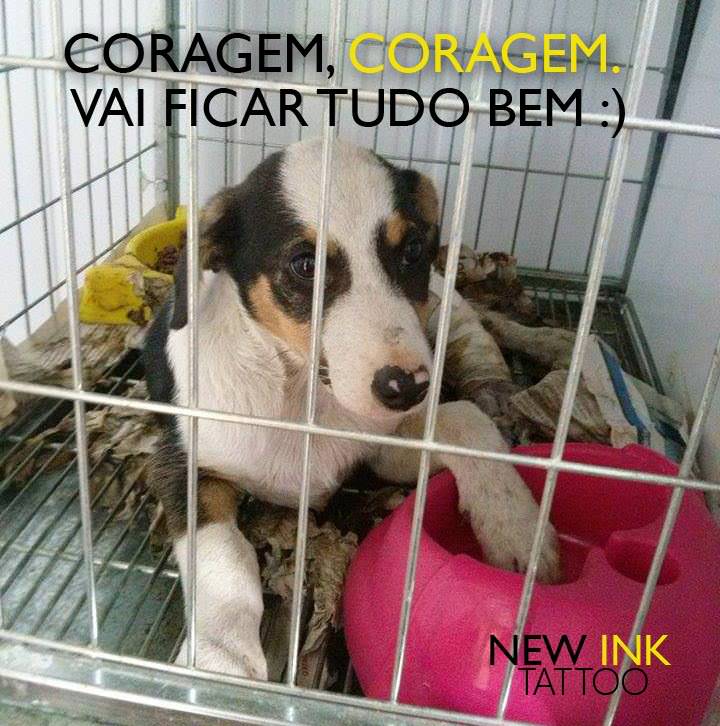 Agora, Coragem, está na Mvet Clínica Popular Veterinária, em Laranjeiras. O animal está internado e terá de amputar a pata que foi esmagada. Ele precisa de ajuda para comer, pois ainda não ingere nada sólido.