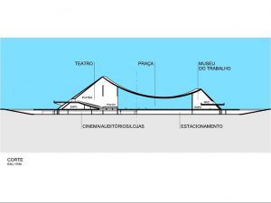 O projeto também contemplava a construção de túneis e transporte coletivo por baixo do empreendimento.