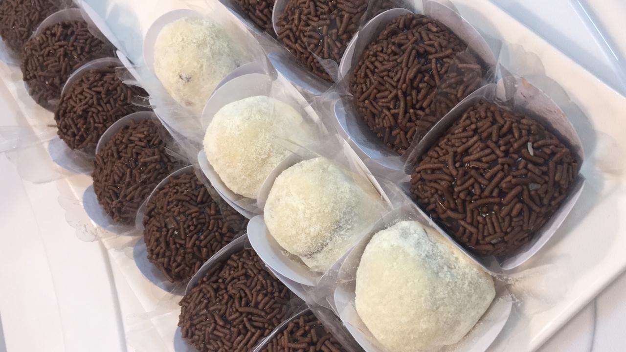 Já para quem gosta de doce, a Casinha Gourmet, oferece variedades de docinhos, fatia de bolo, bolo no pote, verrine, bolo vulcão, pudim, quindim e bombom de morango.