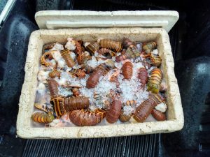 Três homens que carregavam 100 quilos de uma carga de três toneladas de lagosta roubadas...