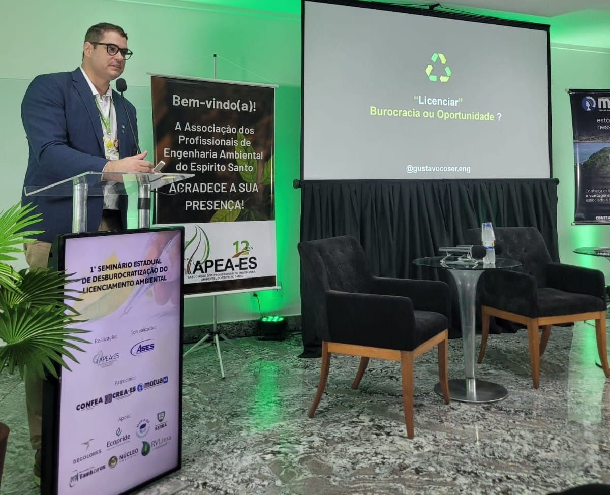 No último dia 17 de junho, foi realizado na Serra o 1º Seminário Estadual de Desburocratização do Licenciamento Ambiental. O evento, promovido pela Associação dos Profissionais de Engenharia Ambiental do Espírito Santo (APEA-ES) em parceria com a Associação dos Empresários da Serra (ASES), reuniu representantes do setor público, da iniciativa privada e profissionais da área ambiental.