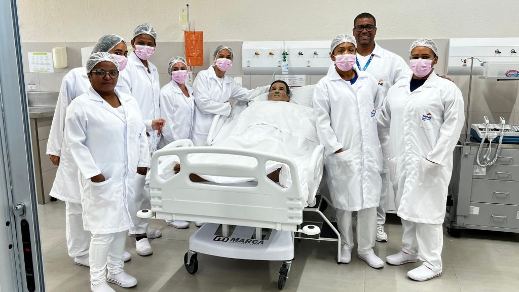 O espaço também oferece uma bomba de infusão contínua para administração de medicamentos e dieta enteral, além de um eletrocardiógrafo portátil para treinamentos. Essa infraestrutura moderna permitirá que os alunos concluam os cursos ainda mais preparados, consolidando o Senac como referência na formação de profissionais da saúde.