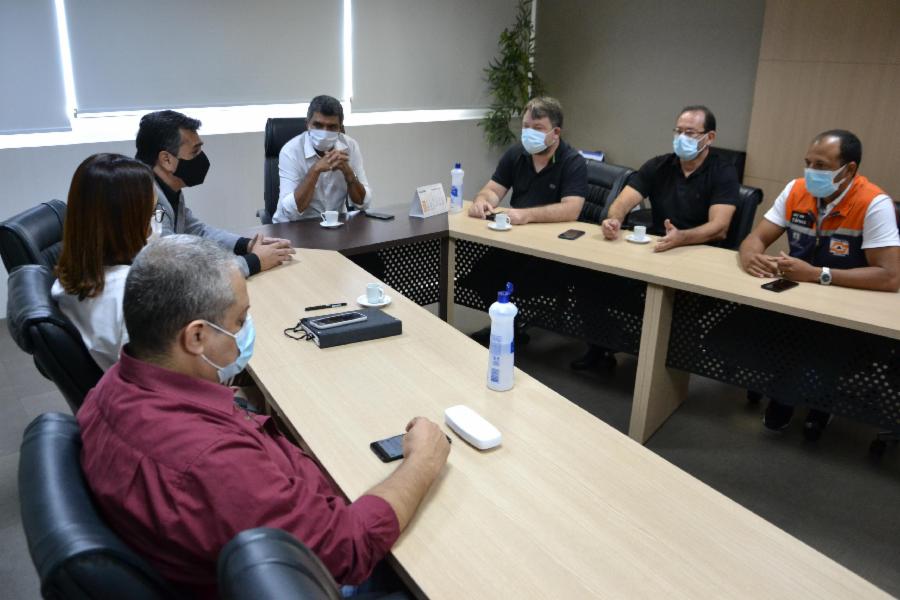 A reunião contou com a presença do prefeito Sergio Vidigal, da Defesa Civil, das secretarias de Serviços, Educação, Infraestrutura e Mobilidade Urbana, Assistência Social, Defesa Social e Administração e Recursos Humanos.