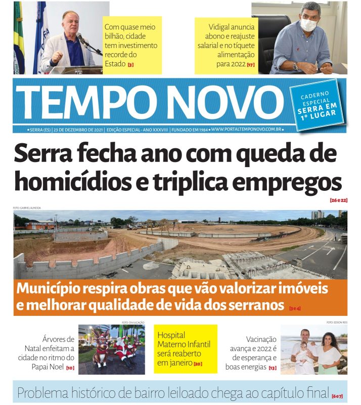 Acima você pode conferir nossa edição impressa especial de fim de ano: ‘Caderno Serra em 1º Lugar’. Como já diz o nome, o projeto tem como linha editorial a valorização da nossa querida cidade da Serra, que possui 465 anos de muita história; o objetivo é mostrar ao mundo o quanto nosso município é importante.