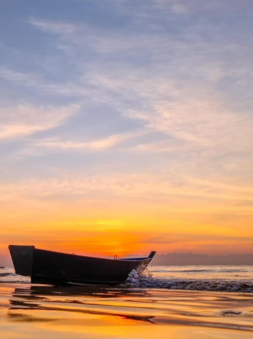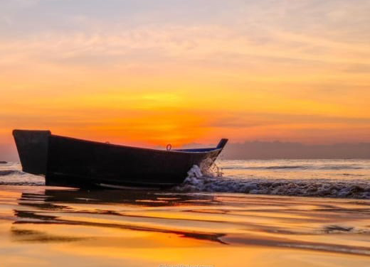 A foto campeã mostra o amanhecer na praia de Manguinhos com um dos maiores símbolos da vila de pescadores que é o barco. O balneário é um local bucólico e uma vila que abriga diversos pescadores, onde muitos deles vivem da venda do que conseguem pescar no mar que fica no quintal de casa.
