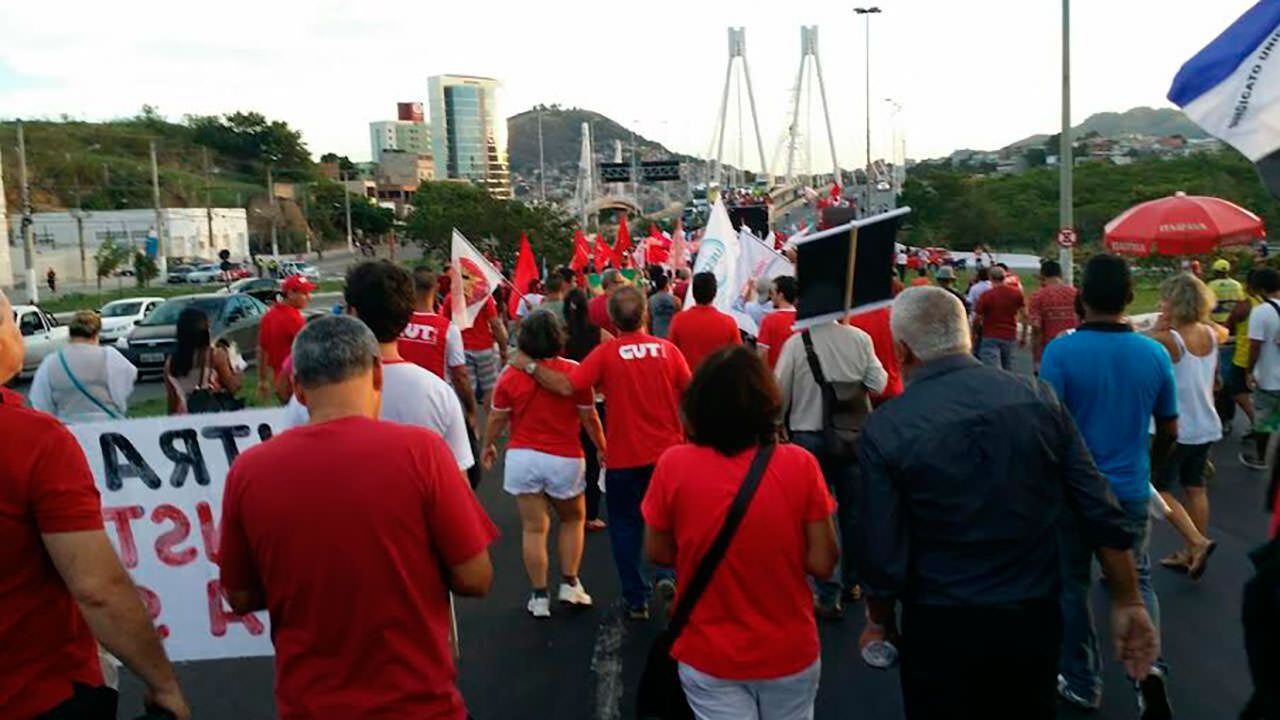 A manifestação saiu da Ufes e pretende chegar até a sede da Petrobrás no estado, já na Reta da Penha. O ato é organizado pelo PT, com apoio da Central Única dos Trabalhadores (CUT), União Nacional dos Estudantes (UNE), Movimento dos Trabalhadores Sem Terra (MST), entre outras entidades e partidos que apoiam o governo Dilma.