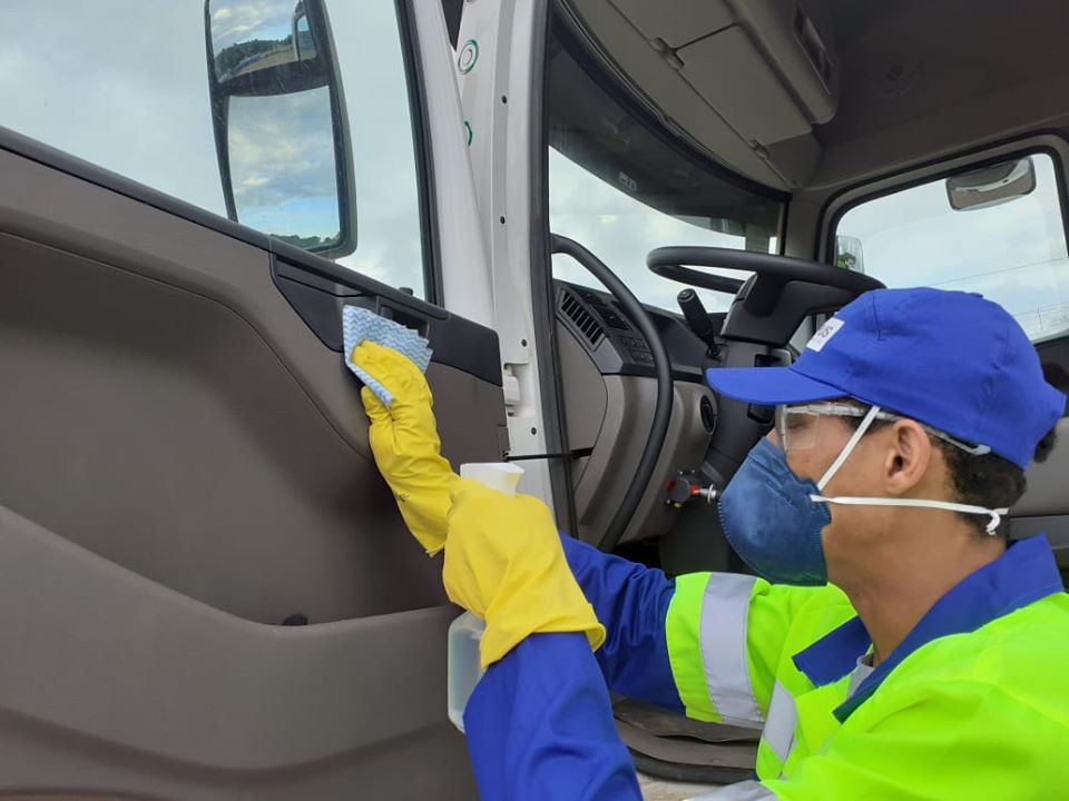 – Reforço nos procedimentos de limpeza e higienização dos caminhões, veículos de transporte, bases operacionais e áreas comuns de convivência;