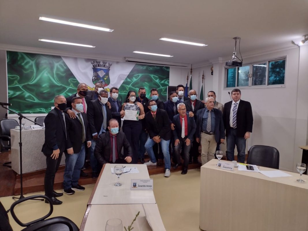 Lá em Cariacica, na Câmara de Vereadores, a moradora da Serra, do bairro Morada de Laranjeiras, Juny Magna Donato, também recebeu homenagem como Cidadã Cariaciquense.