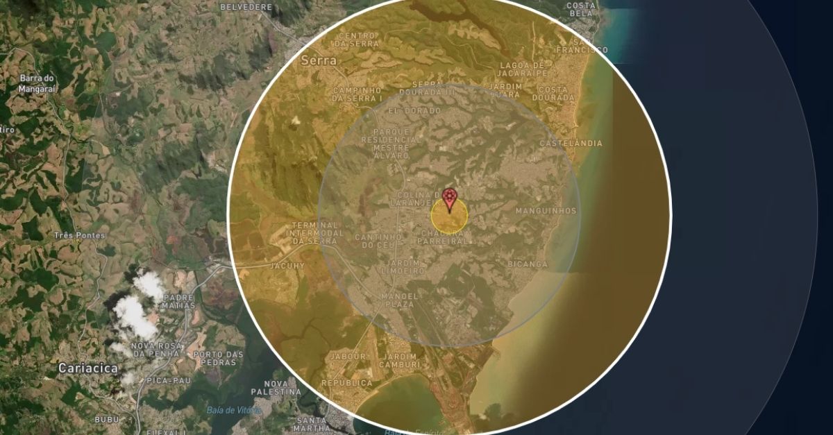 Para se ter uma ideia do tamanho do impacto, bairros como Serra Dourada III, Praia da Baleia e Hélio Ferraz – que estão em pontos distintos – seriam atingidos pelo raio de dano da explosão.