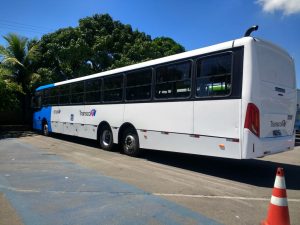 Na última terça-feira (23), a Ceturb iniciou a fase de testes do ‘super ônibus’ que tem 15 metros. Segundo a companhia, o novo coletivo seria uma alternativa ao ônibus articulado, que “é muito caro e possui custo de manutenção muito elevado”. O veículo tem a capacidade de 115 passageiros sentados e em pé.
