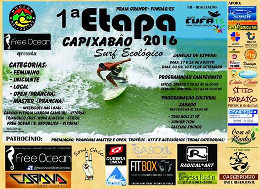 Bora pegar aquela onda? Neste sábado (03) e domingo (04), o mar de Praia Grande vai receber a 1ª Etapa Capixabão Surf Ecológico 2016. No primeiro dia de competição, o início será às 07h30 e com término às 16h. No domingo, o horário é o mesmo, com o término às 14h.