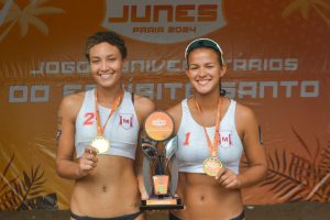 A dupla composta pelas atletas Luiza Sena e Karen Neto, da AEST, são campeãs dos...