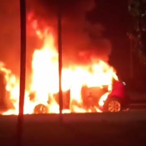 Um carro de passeio pegou fogo na noite deste sábado (18) no meio da Av...