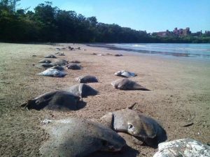 O município de Vitória vai analisar, em laboratório, amostras dos peixes que apareceram mortos na...