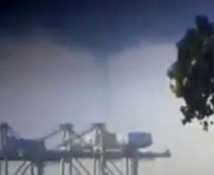 Uma nuvem com um formato diferente sobre o mar na Ponta de Tubarão, perto da...