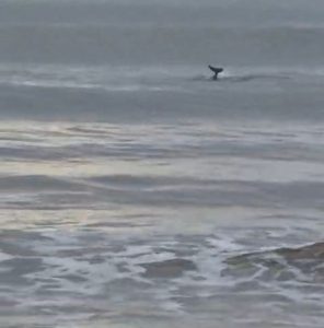 Dois golfinhos foram avistados nadando entre as praias do Amigão e Solemar, na orla de...