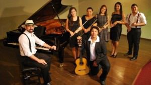 A cantora Gardenia Marques, Jackson Leão e os músicos Vinícius Piê, Magno 7 Cordas, Thiago...