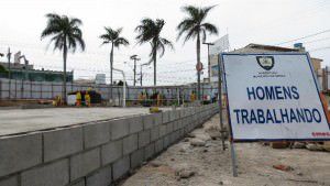 Uma parte da obra da Praça Encontro das Águas, em Jacaraípe, que está custando aos...
