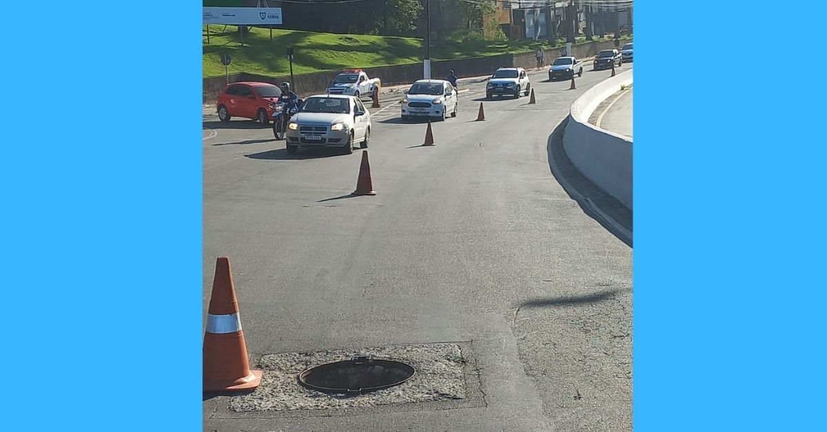 Uma tampa de bueiro quebrada causou um enorme congestionamento na Avenida Norte Sul entre os bairros Porto Canoa e Laranjeiras, na Serra.