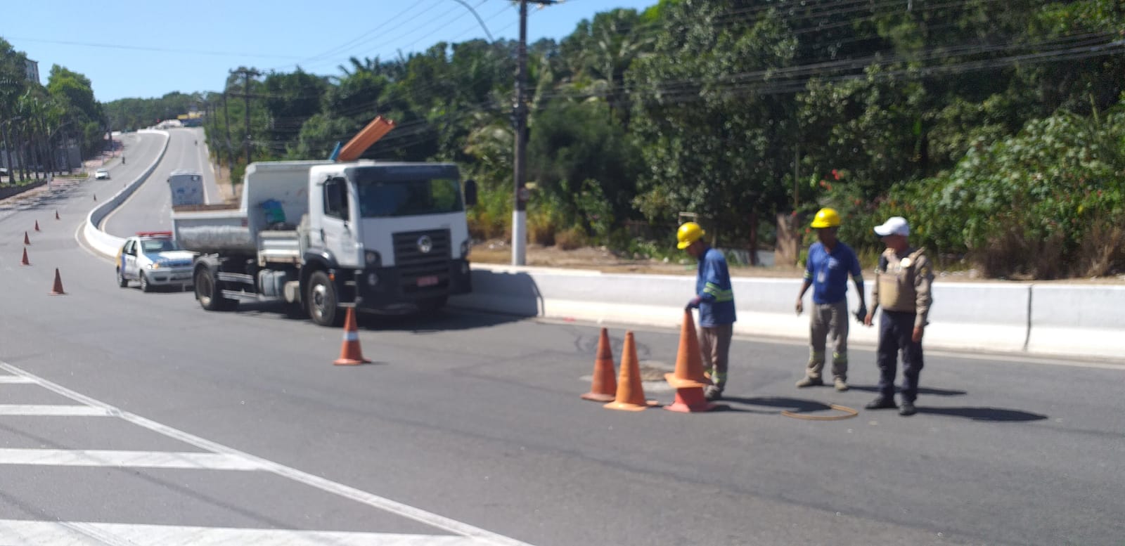 Em campo estavam os agentes de trânsito Ferreira e Ronquete. “Tivemos a informação que esta tampa de PV estava aberta colocando em risco a população. Nosso operador Basílio entrou em contato com a Cesan gerando o protocolo e pedimos prioridade devido a via ser bastante movimentada. Esperamos que a substituição seja realizada ainda hoje. Estamos tendo prejuízo na fluidez, mas não abrimos mão da segurança. Se uma moto tentar desviar pode ter uma queda do motociclista ou choque lateral entre veículos”, informou o agente Milton Moura.