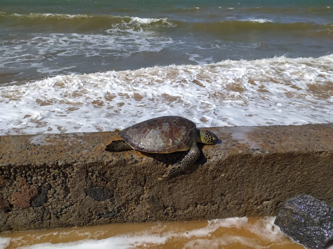 “Essa tartaruga morta é coisa recorrente aqui. Temos reclamado muito dessa situação, são redes clandestinas que o pessoal coloca a menos de 50 metros da praia. Perigo tanto para o banhista, quanto para os animais e ninguém toma providência”, denuncia o morador de Marbella, identificado apenas como Hudson. Segundo ele, a tartaruga deve ter ficado presa em alguma rede de pescador.