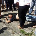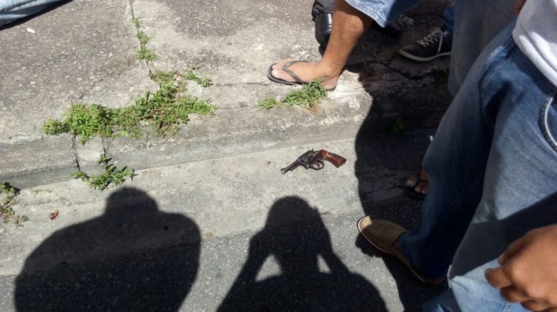 Três homens tentaram roubar uma Hilux prata, só que o dono da caminhonete um capitão da Polícia Militar reagiu ao assalto e disparou vários tiros contra os assaltantes. Dois deles foram atingidos. Um conseguiu fugir e o outro ficou estendido na calçada até a chegada da Polícia Militar e do Samu. O terceiro que carregou um dos baleados para dentro de um veículo prata saiu em disparada pelas ruas do bairro.
