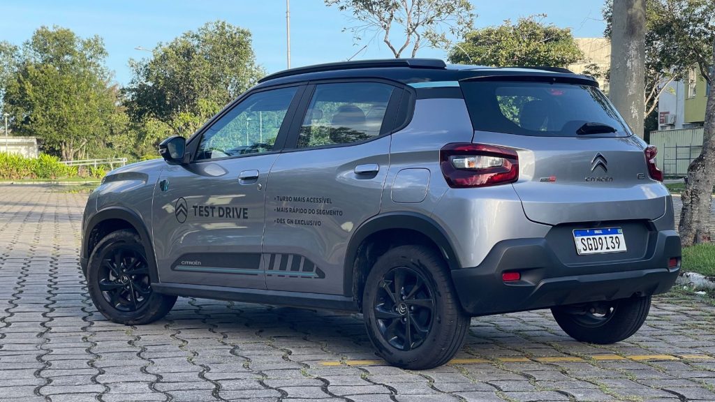 Visualmente, o C3 You! aposta em um design alto, com linhas modernas e elementos que remetem aos SUVs compactos, como os faróis divididos em dois andares e a frente elevada. A versão testada vinha com rodas de liga leve de 15 polegadas e detalhes escurecidos, que reforçam sua proposta mais descolada.