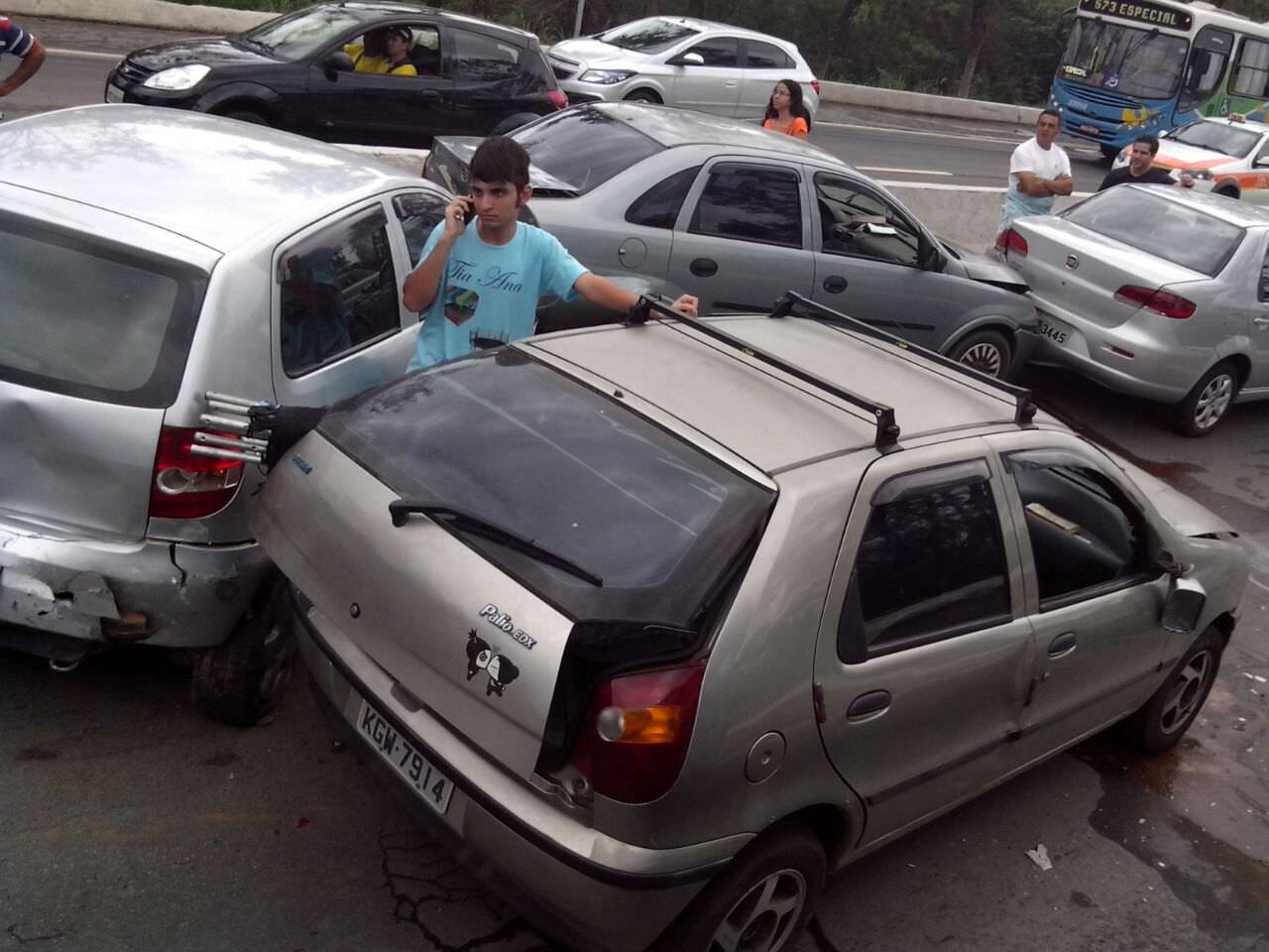 Neste momento, as 9h, o trânsito está parado na BR 101 nos dois sentidos. É que aconteceram dois acidentes no mesmo local, nos dois sentidos. Um deles é no sentido Vitória x Serra, em frente ao Apart Hospital, entre um Fiesta Vermelho e uma moto. O outro foi um engavetamento entre cinco carros, no sentido Serra x Vitória, em frente ao radar. Não houve vítimas com gravidade.