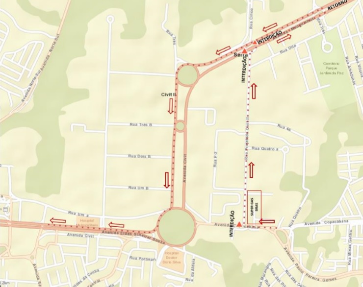 Na prática, as mudanças ocorrerão da seguinte forma: quem sai da Avenida Copacabana em direção à rotatória deve entrar à direita na rua Geraldo Del Pupo e de lá seguir até a avenida Talma Rodrigues Ribeiro. O contorno para ir em direção à região de Laranjeiras deve ser feito no cruzamento próximo ao cemitério Jardim da Paz. Isso será seguido por 60 dias.