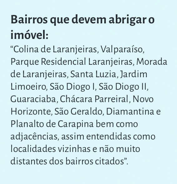 No edital está descrito os bairros potenciais para a locação do imóvel (Tabela 1) e as unidades que seriam transferidas (Tabela 2). E algumas obrigatoriedades como, por exemplo, a área útil mínima de 2.870m², local sem risco de alagamento e ser bem servido pelo sistema de transporte coletivo.