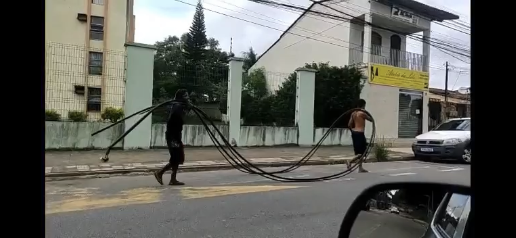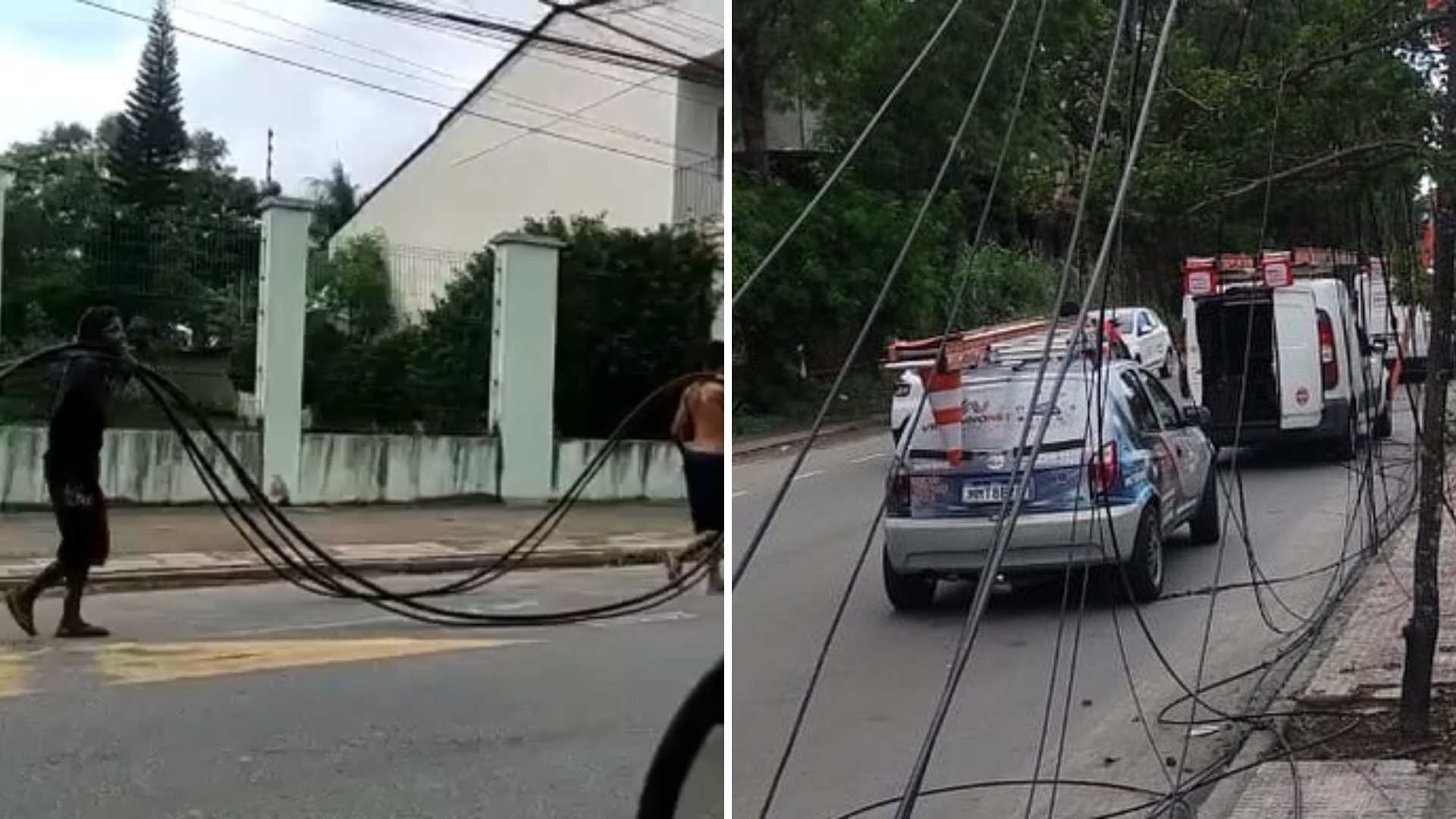 Dois moradores em situação de rua foram flagrados na manhã deste domingo (09) na rua Marataízes, em Valparaíso, região da Grande Laranjeiras, furtando a viação dos postes, o que acabou por romper a fibra ótica e deixar os bairros de Valparaíso e Colina de Laranjeiras sem internet.