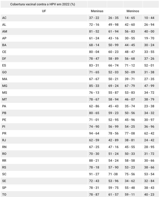 As baixas taxas preocupam a pasta e profissionais da saúde pela associação do HPV ao câncer de colo do útero, de pênis, vulva, canal anal e orofaringe, além das verrugas genitais.