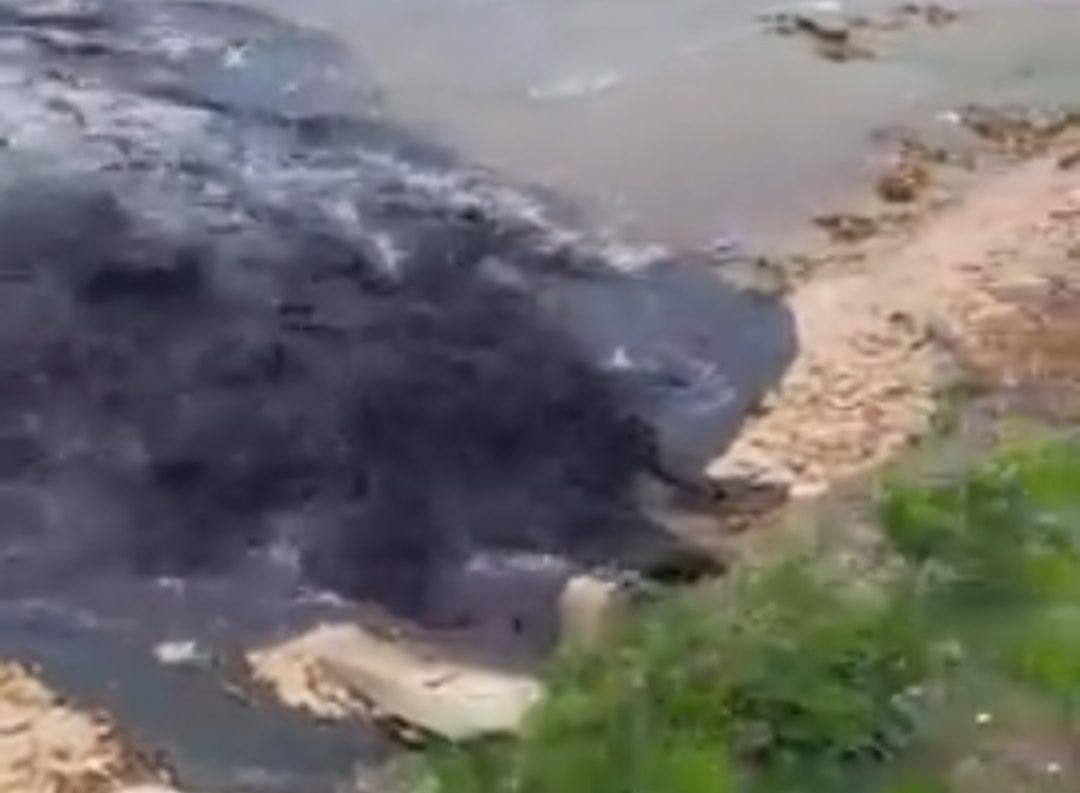 Pelas imagens é possível ver moradores e o vereador Léo do IAPI (PDT) agradecendo trabalhadores da Vale por terem feito o desentupimento no interior da área da empresa, gerando o descarte da água escura no mar.