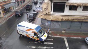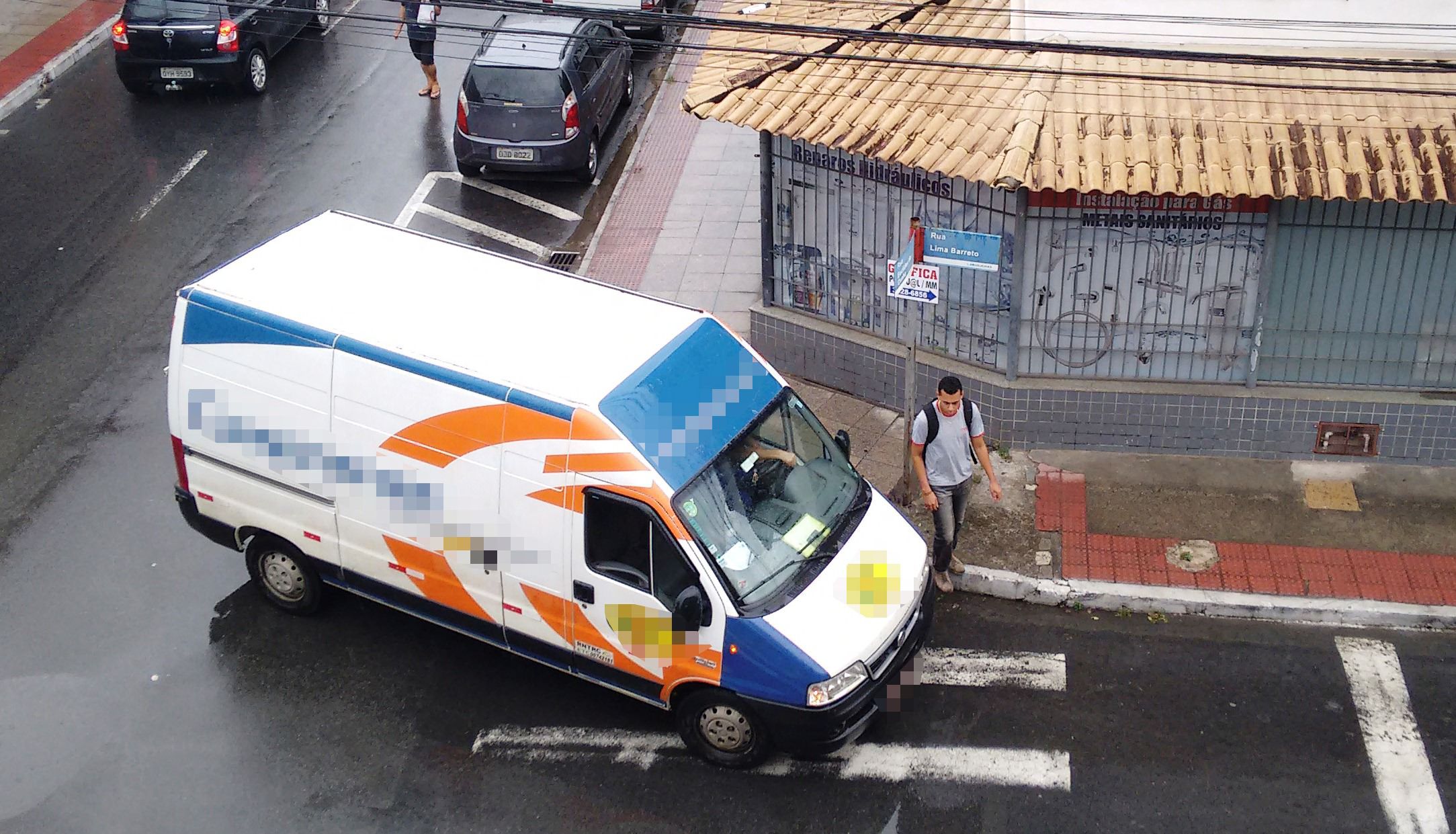 O flagrante aconteceu entre a rua Euclides da Cunha e a Lima Barreto, em Laranjeiras, que recebe diariamente grande tráfego de veículos. De acordo com o popular, a van que presta serviço para uma transportadora de cargas estava entregando mercadoria em uma malharia que fica na rua e ficou parada no local por volta de 10 minutos.