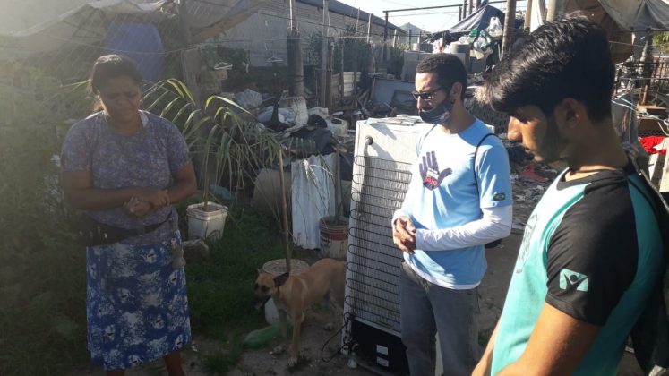 Uma das beneficiadas pelo projeto Amor em Ação foi a Axcilene, que é moradora de Cantinho do Céu, bairro da Serra, que fica na região de José de Anchieta. “Doamos uma geladeira para ela. A situação que ela vive nos chamou muito a atenção. Ela mora dentro de um contêiner, imagine a quentura que é dentro daquele lugar? Ajudamos também com um ventilador para tentar dar uma qualidade de vida melhor pra ela e também doamos lençóis para forrar a cama e cobrir as crianças”, conta Eduardo.