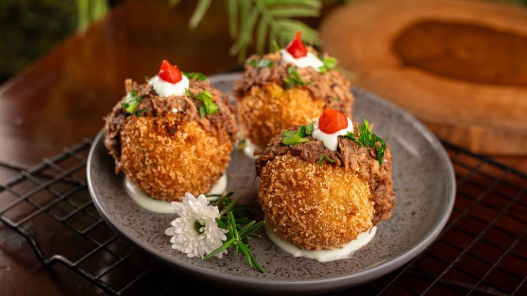 Para fechar a rota serrana, o charme do Dona Dalva Botequim traz o “Trio The Best”, com três bolinhos empanados na farinha Panko, recheados com queijo e carne desfiada — crocantes, suculentos e com aquele sabor de boteco raiz. Um roteiro que pode se encaixar perfeitamente no tour: saindo das praias até a região de Laranjeiras.
