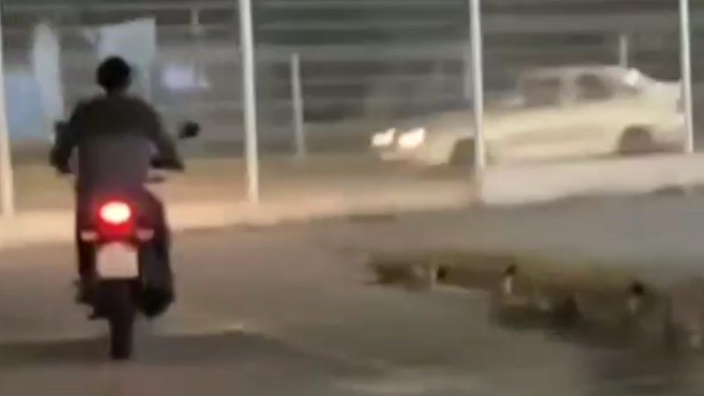 Segundo informações da vítima, que não se identificou, o criminoso apontou uma arma para seu peito e a derrubou no chão. Em seguida, roubou sua moto e saiu pilotando tranquilamente pelo estacionamento do supermercado.