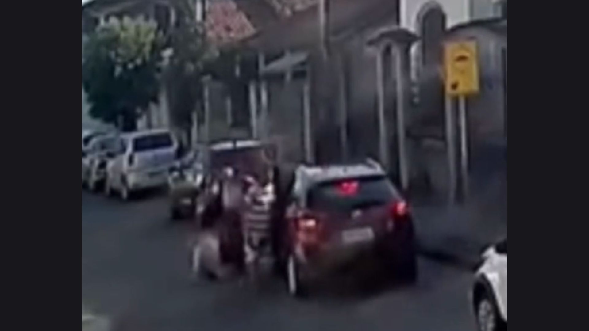 No vídeo, vê-se os assaltantes se aproximando com agressividade e assustando a mulher no veículo. A seguir, a dupla força o idoso a sair do banco do motorista, derrubando-o no chão. A mulher pede ajuda e é auxiliada pelos moradores. As vítimas explicaram à polícia que estavam na área para tratar de alguns assuntos em um escritório de contabilidade quando foram alvos do assalto.