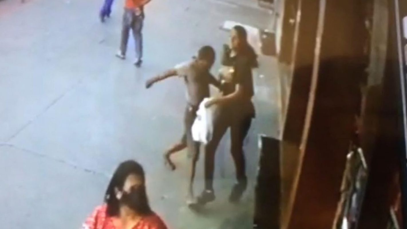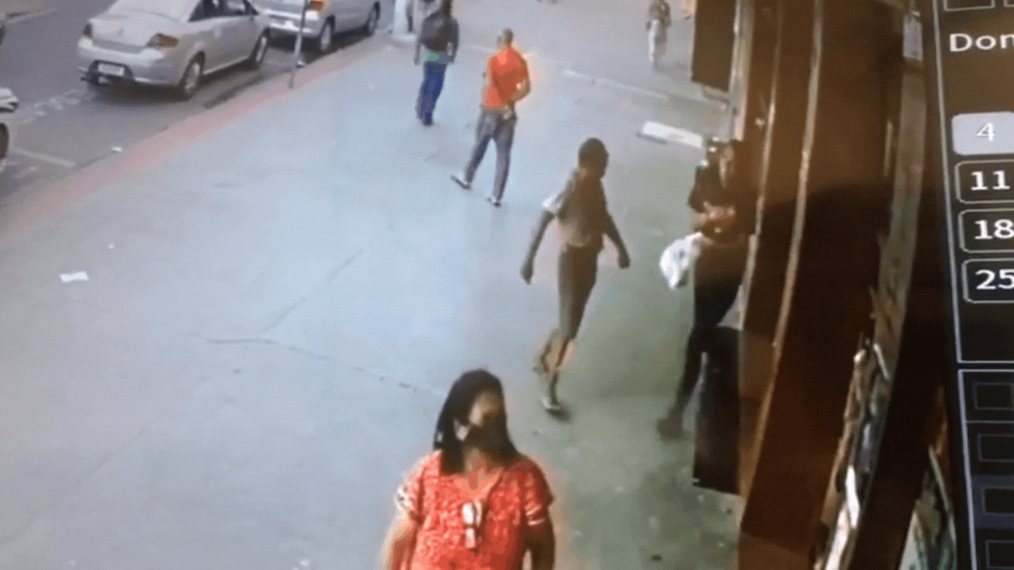Um homem que não teve seu nome identificado — possivelmente uma pessoa em situação de rua — foi flagrado colocando o pé, propositalmente, na frente de uma mulher para que ela caísse no chão. O caso aconteceu em Serra Sede, no último sábado (10).